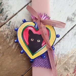 Λαμπάδα πασχαλινή πλατιά χειροποίητη με μαύρη γάτα