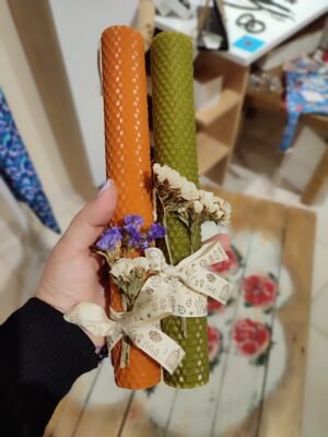 • Λαμπάδα πασχαλινή απο μελισσοκέρι με αποξηραμένα άνθη (λαδί)